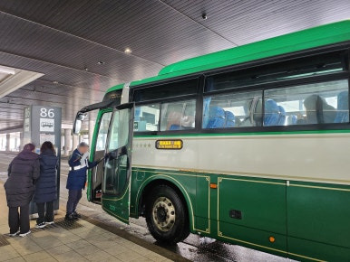 86번 정류장으로 나오면 도난버스가 있습니다. 인원 체크하는 분께 이름을 얘기하면 명단을 확인하고 탑승시켜 주십니다. (탑승할 때 버스비를 지불하면 됨)