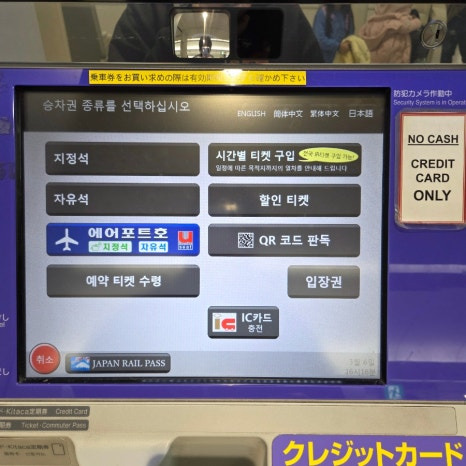 - 파란색 키오스크에서 구입. 한국어 지원돼요!