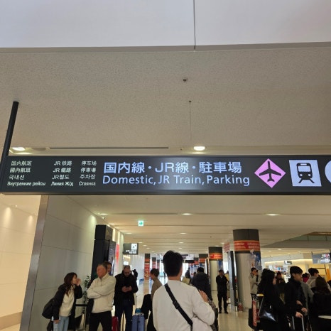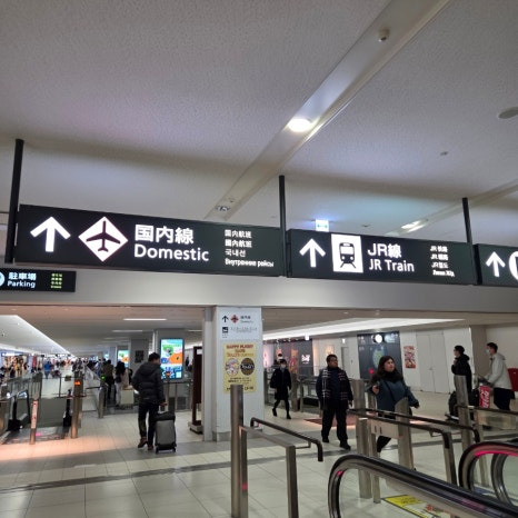 국제선에 도착해서 국내선 터미널로 이동한 후, 지하 1층으로 내려가면 JR 신치토세공항역이 있어요. 국제선과 국내선이 같은 공간에 이어져 있으니 공항 내부 안내 표지판을 잘 따라가세요.