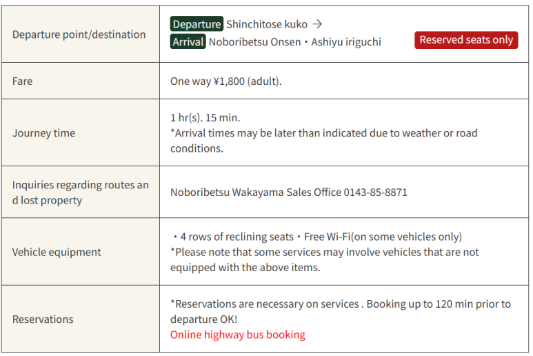 신치토세공항에서 노보리베츠까지 바로 가는 도난버스는 1인 1,800엔이며 예약을 해야 이용할 수 있습니다. 버스비는 도난버스 예약 시 카드 결제해야 됩니다.