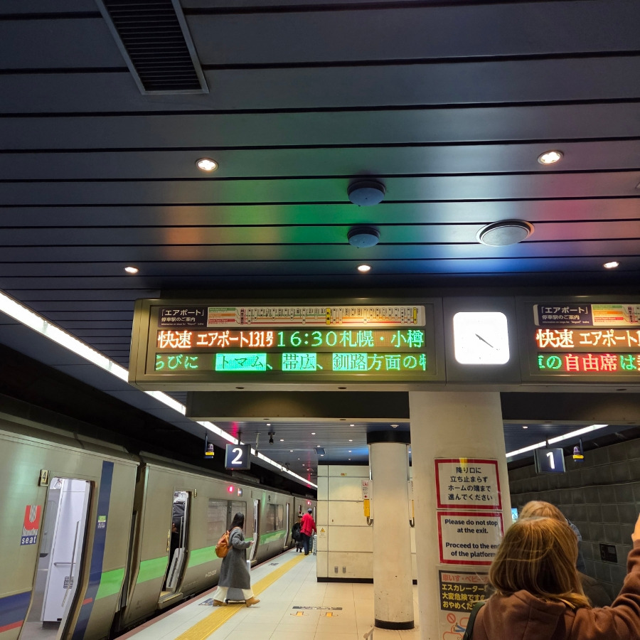 쾌속에어포트 탑승 후 환승은 캐리어와 짐을 들고 여기저기 걸어다녀야하는 불편함과 소요시간 비슷, 금액은 2배. 스스키노역, 삿포로역 가시는 분들 중 큰 이유가 없다면 가성비 좋은 공항버스 이용하세요!