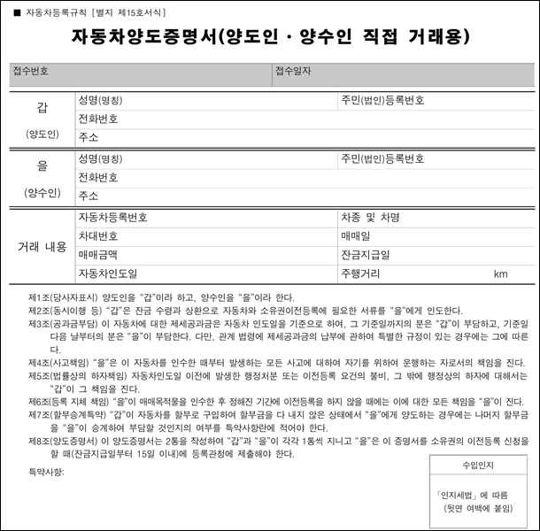 위와 같은 경우, 자동차 양도증명서를 미리 준비하면 거래 절차가 원활하게 진행됩니다.